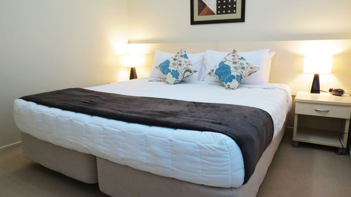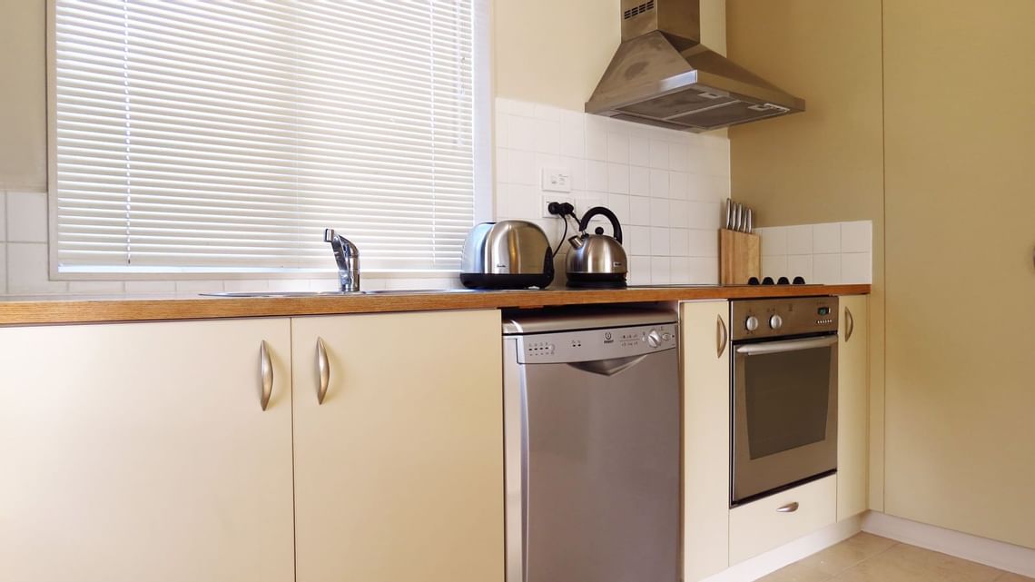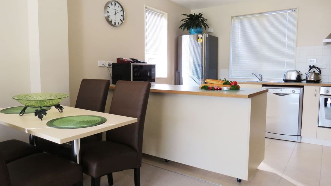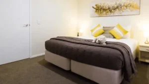 2 Bedroom apartments are located on either ground floor or split level with open plan living and outdoor flow to large balcony. The lounge has a sofa bed (available on request) for an extra person. Kitchens are well equipped with all utensil’s, crockery, cutlery and a large fridge/freezer suitable to cater for a family of four. All bedrooms offer Super King size split beds that can be converted to 4 singles or 2 King beds. The bedrooms are separated by a bathroom. A hairdryer is available in the bathroom. Each apartment is equipped with laundry facilities, ironing board, steam iron and cleaning equipment is supplied.